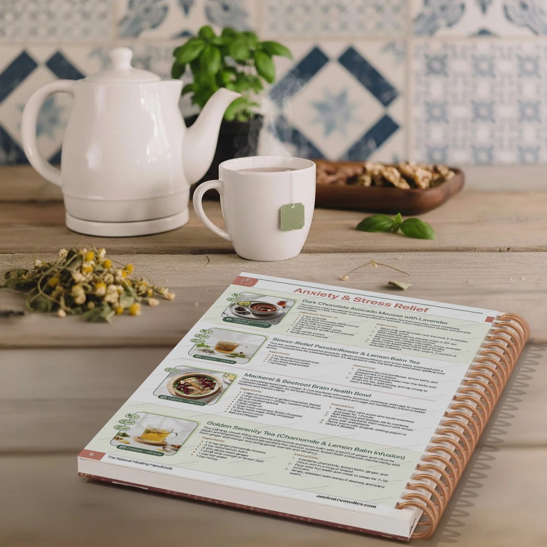 Inside these pages, you’ll find step-by-step herbal pairings, kitchen-ready remedies, calming teas, simple preparations, and practical guidance you can use throughout the year.