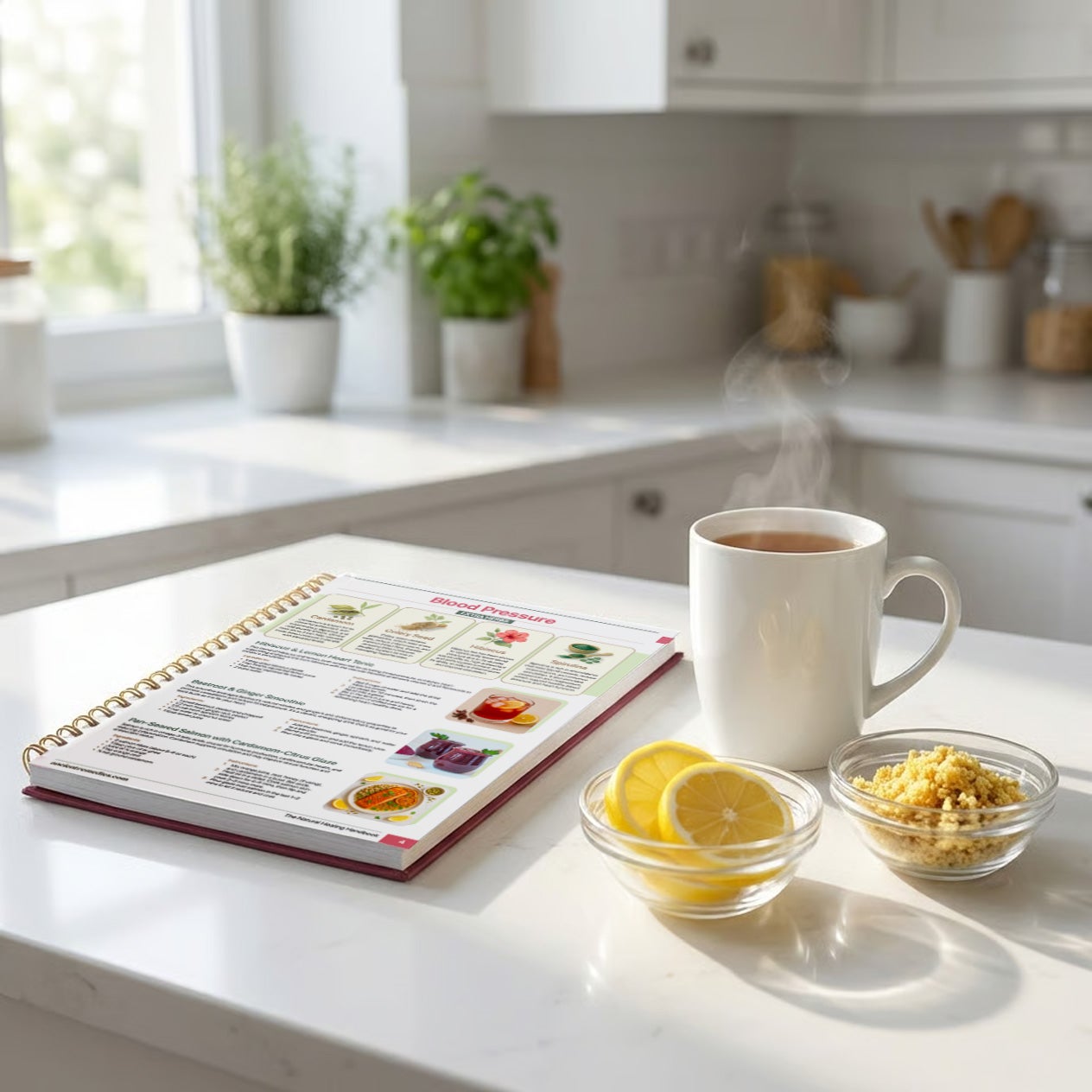What readers love about this book is that it is built around ingredients people already recognize and often already have at home. Chamomile, cinnamon, rosemary, ginger, lemon, garlic, and simple staples like that.
